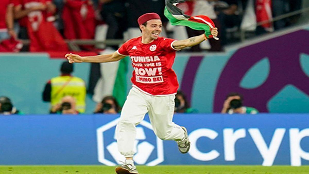 إثر المباراة بين تونس وفرنسا يوم 30 نوفمبر 2022 اخترق الشاب التونسي أمين بلاغة الحواجز الأمنية ونزل فوق عشب الملعب في منتصف الشوط الثاني حاملا الراية الفلسطينية.
