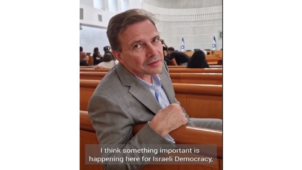 ولقد دوّن السفير الألماني حضوره في فيديو، ونشره على منصة التواصل الاجتماعي إكس. وقال أنه يعتقد أن أمرا ذو أهمية يجري هنا بشأن الديمقراطية الإسرائيلية، ونحن، كأصدقاء لإسرائيل، نتطلع أيضا باهتمام كبير تجاه المحكمة العليا، لذا، أردت أن أرى بنفسي. ولقد تناولت المحكمة العليا في إسرائيل، يوم الثلاثاء الماضي، تعديلا قضائيا مثيرا للجدل قدمته الحكومة (تحمل توجهات دينية يمينية) في جلسة استماع تاريخية للمحكمة. وإجتمع، لأول مرة في تاريخ البلاد، القضاة الخمسة عشر للتداول بشأن ثماني إلتماسات، قُدمت ضد تعديل القانون الأساسي الذي تم إقراره. ولقد استمرت الجلسة بنحو حوالي 14 ساعة. وكان السفير الألماني لدى إسرائيل، شتيفن زيبرت، حاضرا في الجلسة أيضا كمُشاهد.