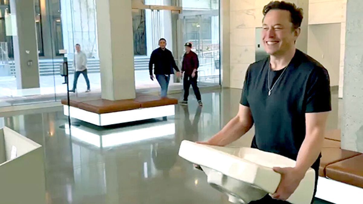 إيلون ماسك يشتري تويتر ويدخل مقرها مصطحبا بمرحاض