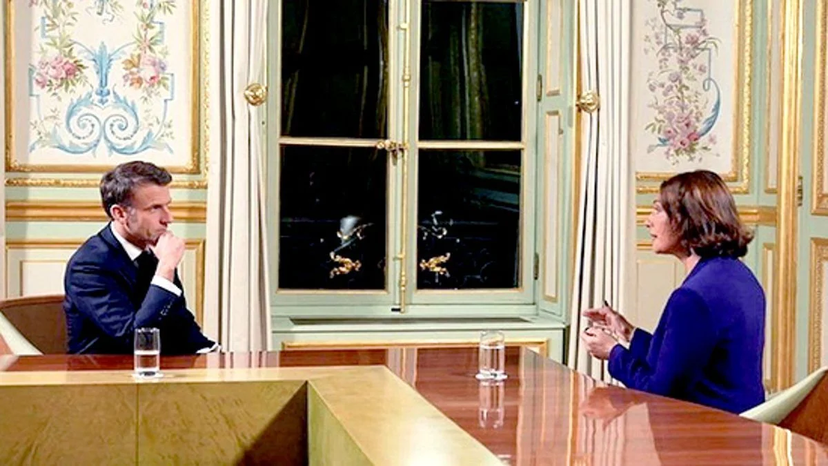 كلمات مفاتيح : ماكرون يطلب وقف اطلاق النار ، حوار ماكرون على بي بي سي