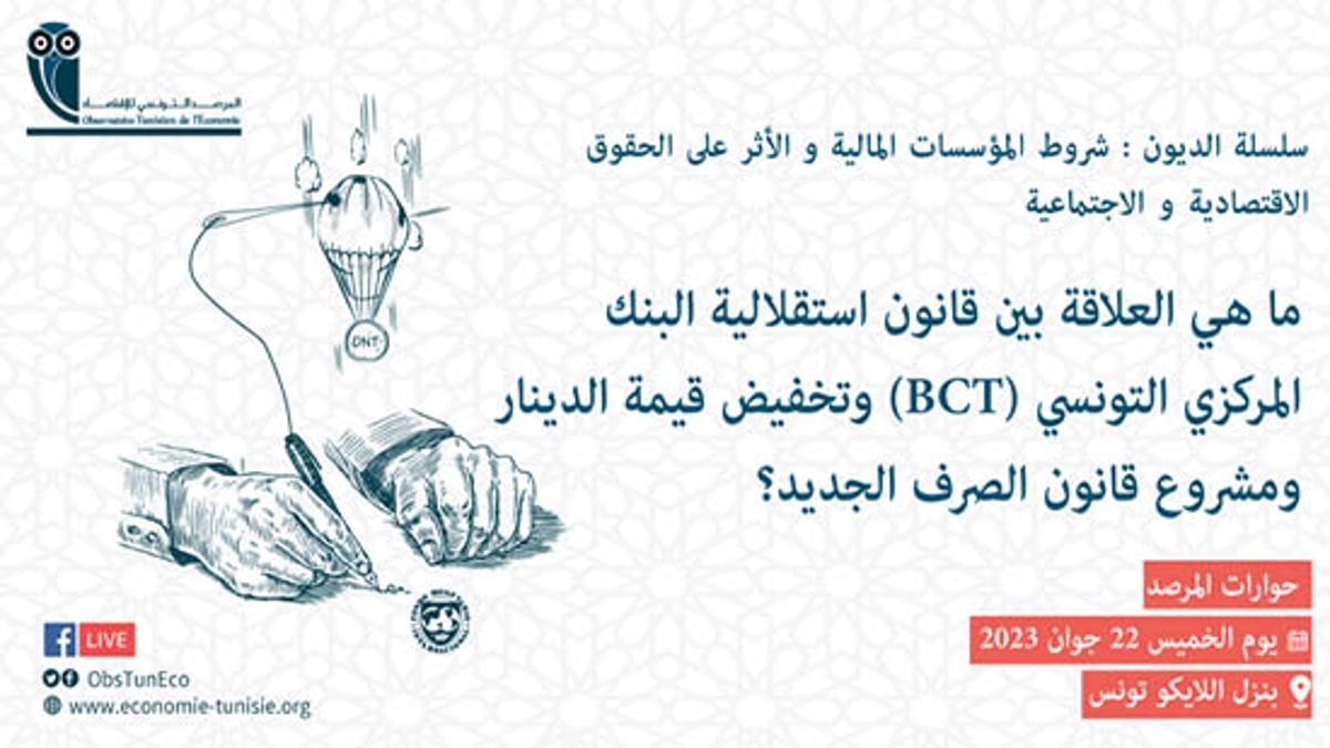 ينظم المرصد التونسي للاقتصاد لقاء حواري بعنوان الدينار طاح ! علاش ؟ و كيفاش ؟   وذلك يوم الخميس 22 جوان  2023 بنزل اللايكو