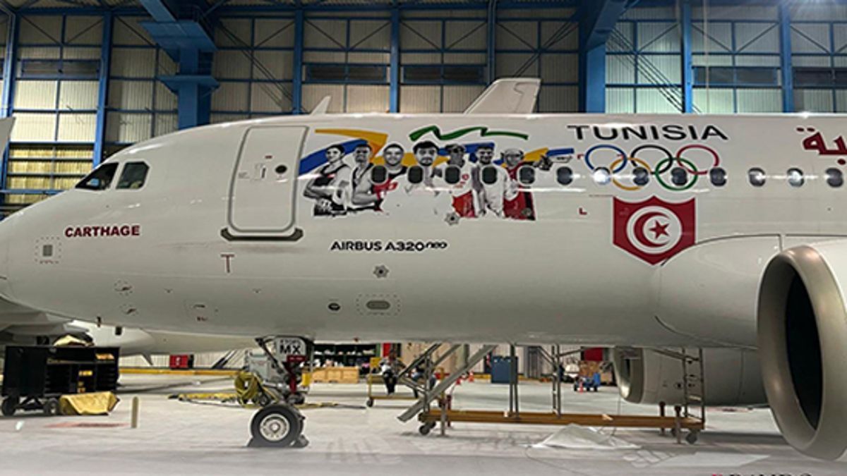 زينت الناقلة الوطنية، الخطوط الجوية التونسية، الطائرة قرطاج بصور 26 رياضي المتأهلين إلى أولمبياد باريس 2024.