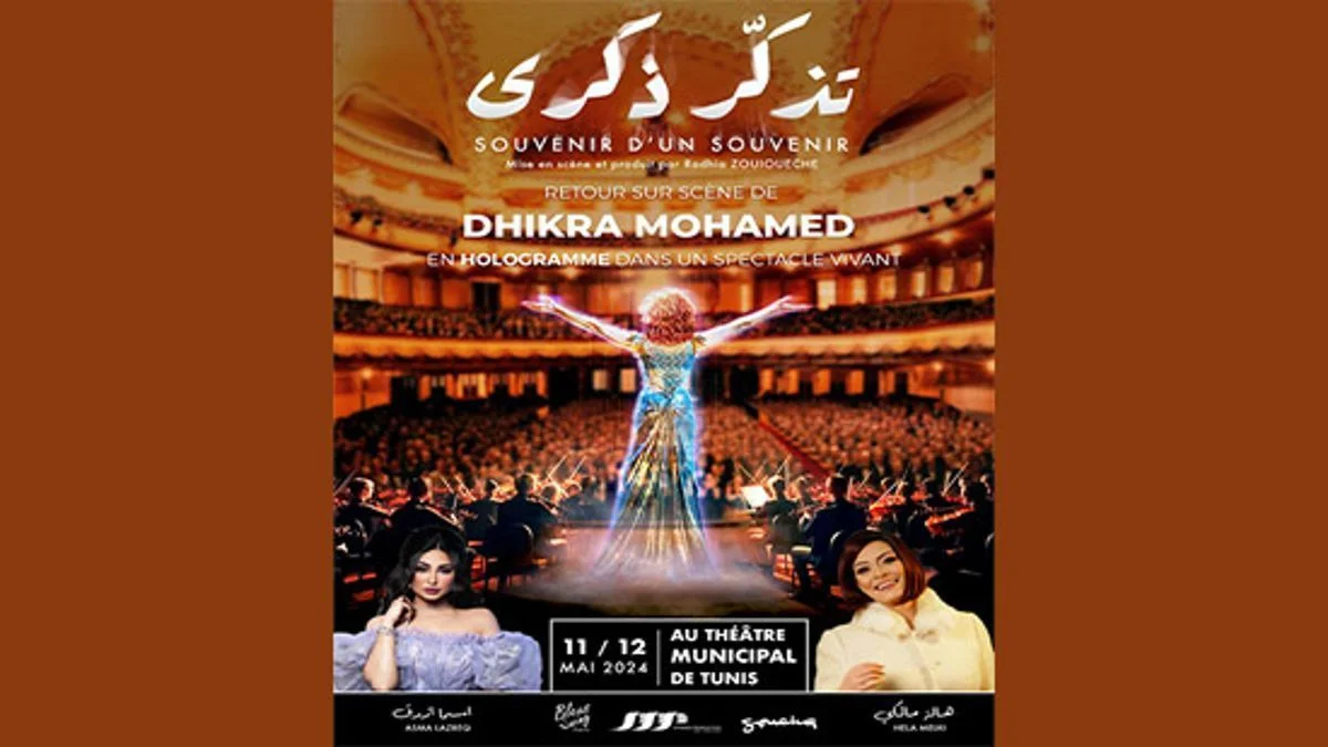 وسيكون موعد Souvenir d un Souvenir حفل خاص بالفنانة الراحلة ذكرى محمد، وحدث سيخلّد في المشهد الثقافي التونسي والعربي أول استغلال لتقنيات تكنولوجية حديثة متمثلة في بث الهولوجرام للفنانة ذكرى محمد على ركح المسرح البلدي لمدينة تونس.