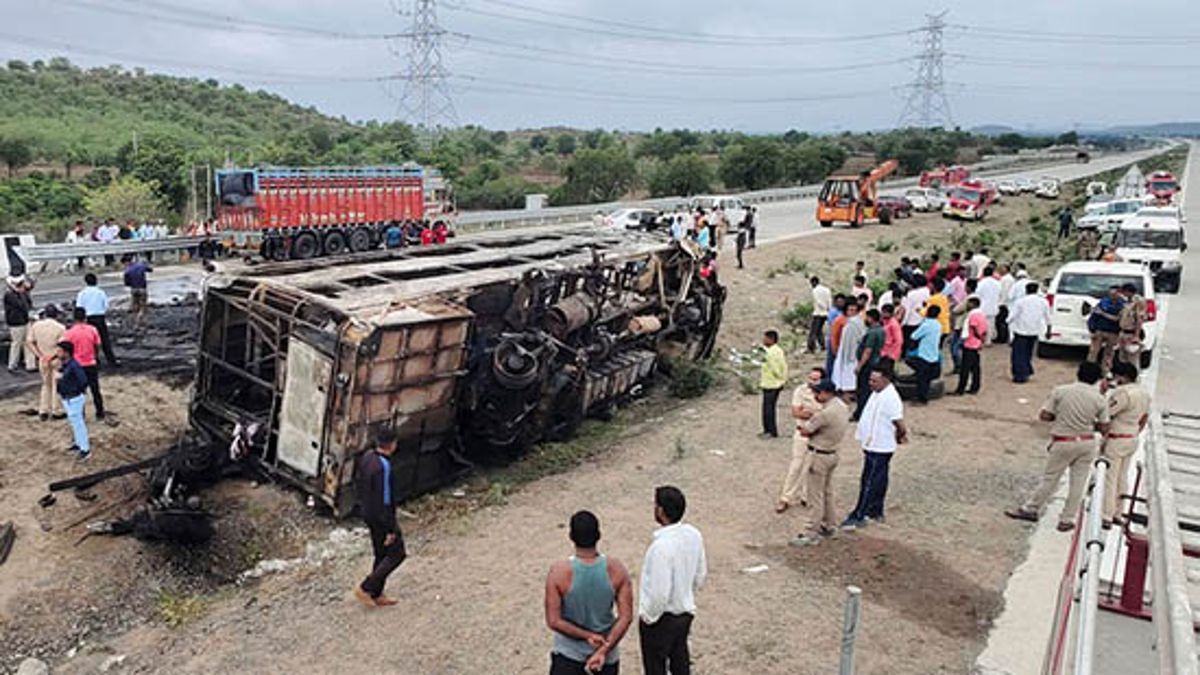 قُتل ما لا يقل عن 25 شخصًا وأصيب ثمانية آخرون في غرب الهند عندما اصطدمت حافلة متجهة إلى مدينة بيون بالحواجز في حوالي الساعة 01:30 بالتوقيت المحلي ، واشتعلت فيها النيران واحترقت ، وفقد 25 شخصًا حياتهم من بينهم 3 أطفال و أصيب 8 أشخاص.