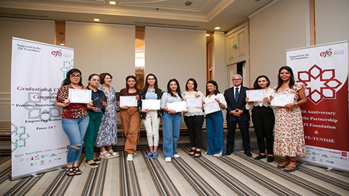 تم، يوم الخميس 28 سبتمبر 2023، توزيع الشهائد للمستفيدين من الدورة العاشرة لبرامج التدريب المشتركة بين مؤسسة التعليم من أجل التوظيف EFE-Tunisie ومؤسسة سيتي CITI Foundation.
