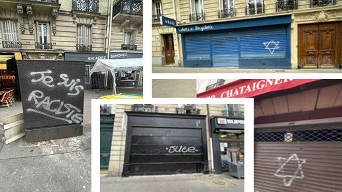 ولقد لطخت هذه الرسوم شوارع العاصمة الفرنسية بعلامات معادية للسامية وأصبح الحي بأكمله مغطي بنجوم داود ، وكلمة جود أو حتى عبارة أنا عنصري بأحرف بيضاء كبيرة. وتتسم الدائرة التاسعة بوجود جالية يهودية تاريخية وقربها من المعابد اليهودية العديدة والمؤسسات اليهودية. وتعددت هذه الرسوم في شارع الشهداء بحوالي عشر من هذا النوع و صادفت مع يوم افتتاح أسبوع إحياء ذكرى تحرير معسكرات الموت للحرب العالمية الثانية.