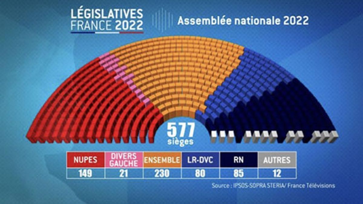 وبعد رئاسية 24 أفريل التي أسفرت على فوز إيمانويل ماكرون إلى سدة الحكم، رجع الفرنسيون مجددا إلى صناديق الاقتراع لترشيح برلمان للخماسية القادمة كما ينصه الدستور فكانت الجولة الثانية من الانتخابات التشريعية تحصل على إثرها تحالف الأحزاب التابع للرئيس إيمانويل ماكرون على 230 مقعدًا فيما اعتبره الجميع بعيدا عن عتبة 289 مقعدًا التي تسمح له بالفوز بالأغلبية المطلقة.