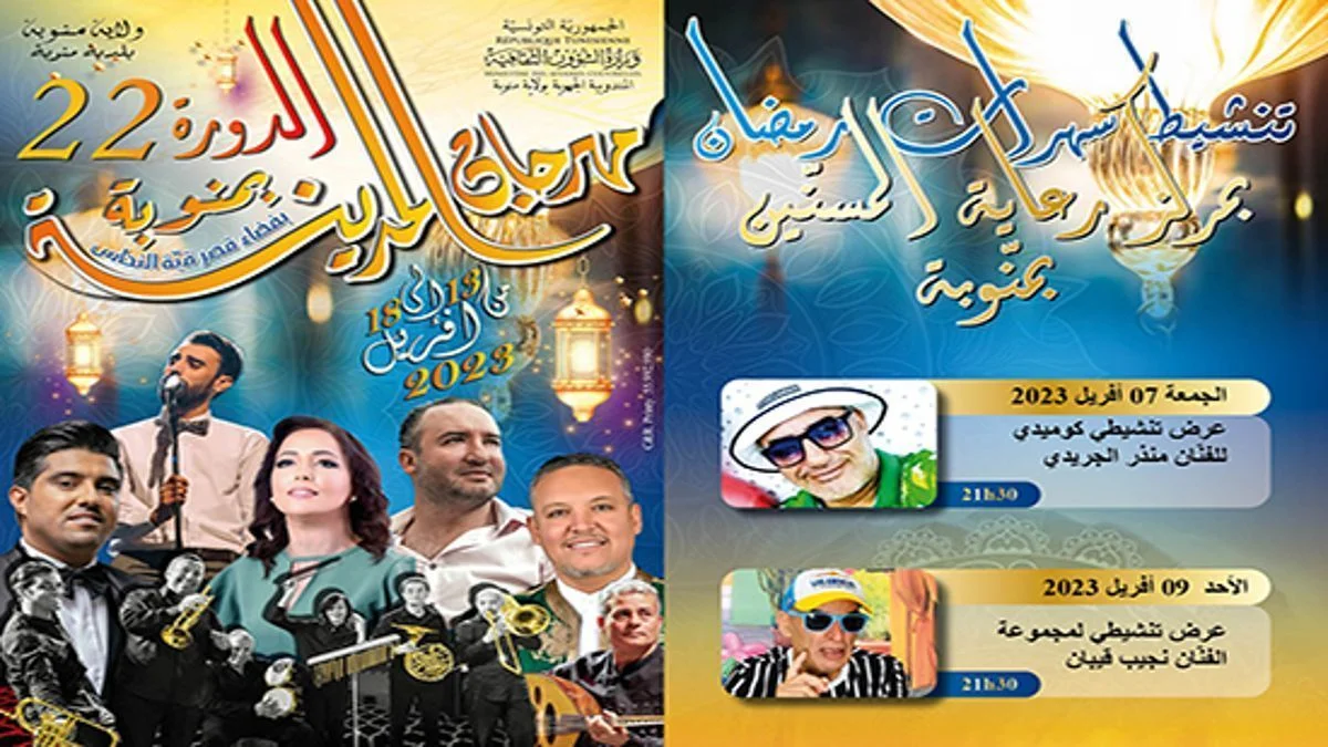 تحيي مدينة منوبة 6 سهرات فنية بمناسبة الدورة 22 لمهرجان المدينة الذي تنظمه كل سنة في شهر رمضان المعظم.