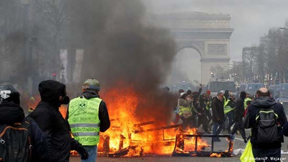 ولقد رافقت الاحتجاجات اعمال عنف وتخريب كإضرام النار في مصبات المزابل والسيارات الرابضة في الشوارع. ولقد اعتقل البوليس الفرنسي ما يفوق عن مائة نفر وطوق محيط ساحة الكونكورد وقصر الاليزي تحسبا لهجوم جماهيري غفير على إقامة رئيس الجمهورية ايمانويل ماكرون. ولقد تعالت بعض الأصوات المعارضة على منصات التواصل الاجتماعي لتجييش الشعب والتظاهر بأكثر قوة نحو تغيير نظام الحكم .