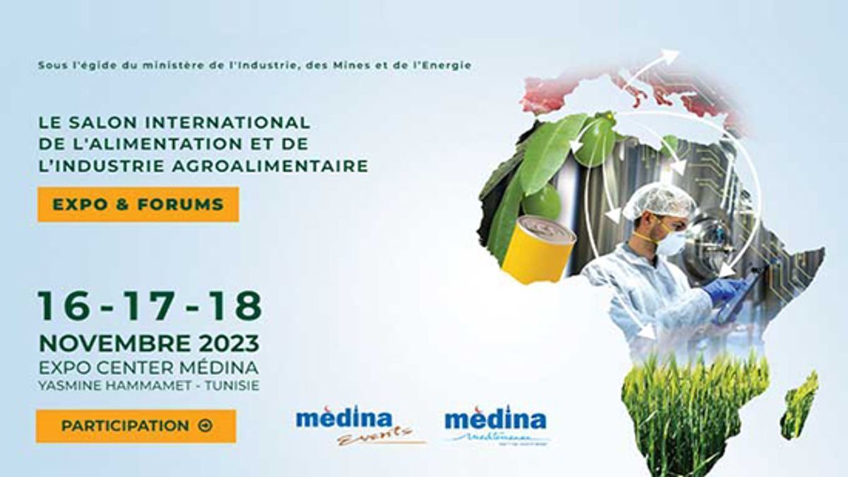 تحت رعاية وزارة الصناعة والمناجم والطاقة، يُنتظم الصالون AGROBUSINESS MEDAFRIQUE EXPO 2023 ، في الفترة الممتدة بين 16 إلى 18 نوفمبر 2023، بفضاء المدينة، بياسمين الحمامات في تونس.