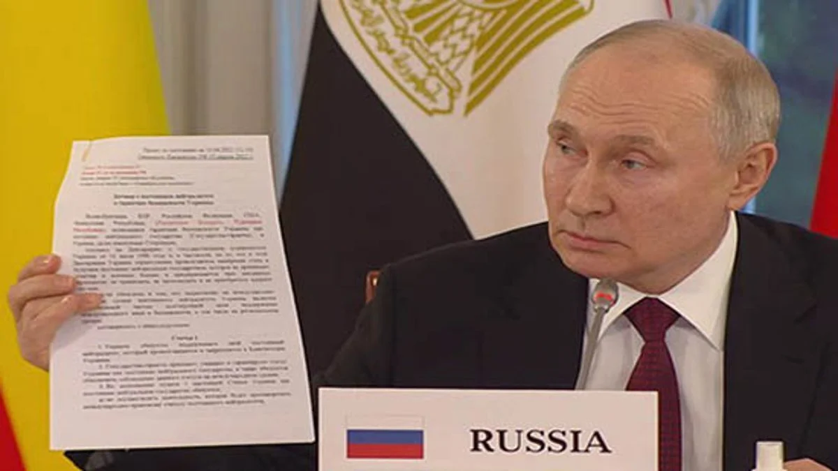 أمام وفد من وسطاء أفارقة حل بمدينة سان بطرسبيرغ بشمال غرب روسيا، كشف الرئيس الروسي فلاديمير بوتين وثيقة ممضات مع الأوكرانيين العام الماضي في تركيا.
