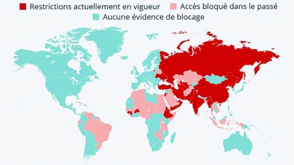 تحظر 62 دولة الوصول إلى الشبكات الاجتماعية أو التطبيقات المتخصصة في المراسلة (نقل الصوت عبر بروتوكول الإنترنت والمراسلة الفورية). وتمنع الحكومات الوصول إلى الشبكات الاجتماعية أو الرسائل باستعمال قيود مفروضة على المستخدمين وهي غالبا ما تقع في إفريقيا وآسيا. وحسب الظروف الحينية للبلاد كالاضطرابات والأحداث السياسية (انتخابات ، مظاهرات ، حروب ، نزاعات ، انقلابات..) تكون القيود مؤقتة وتهدف إلى الحد من تدفق المعلومات أو التحكم فيها. وفي هذا السياق نذكر السنغال ، حيث تم إغلاق العديد من المنصات ، بما في ذلك Facebook و Twitter و Instagram و WhatsApp و Telegram ، خلال الاحتجاجات الشعبية التي اندلعت بمناسبة إدانة زعيم المعارضة عثمان سونكو. أما في خصوص القيود السارية حاليًا، فهي تحظر الشبكات الاجتماعية الأجنبية بشكل أساسي في حوالي 20 دولة كالصين وروسيا وكوريا الشمالية وإيران وميانمار وتركمانستان وهي Twitter و Facebook و Instagram. إلا أن الصين اختارت تركيز نظام خاص بها بتطوير تطبيقات WeChat و Weibo و QQ للاستعمال المحلي.