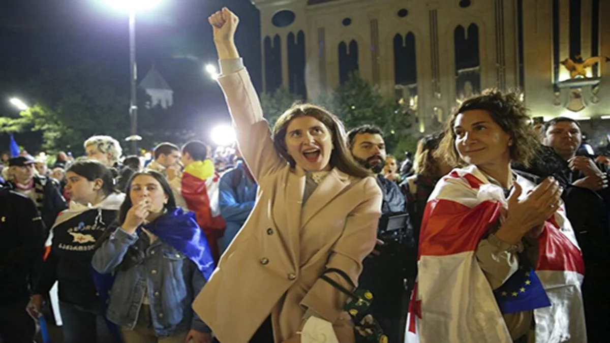 رفرفت الأعلام الجورجية والأوروبية بفرح ليلة الإثنين الفاصلة بين 12 و13 ماي في عاصمة جورجيا، تبليسي، أين إحتل آلاف المتظاهرون الساحات أمام البرلمان، في أجواء إحتفالية، رغم البرد والمطر وذلك بشأن معارضة قانون النفوذ الأجنبية.