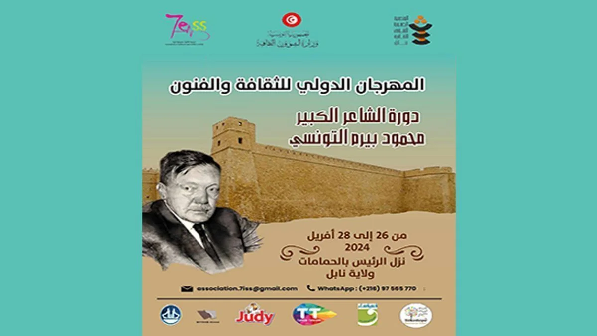 تحت إشراف وزارة الشؤون الثقافية، تنظم جمعية الحس الثقافية والتنشيطية والثقافية مهرجان شعري وأدبي يتخلله نقاشات ومحاضرات تحت عنوان دورة الشاعر الكبير محمود بيرم التونسي.
