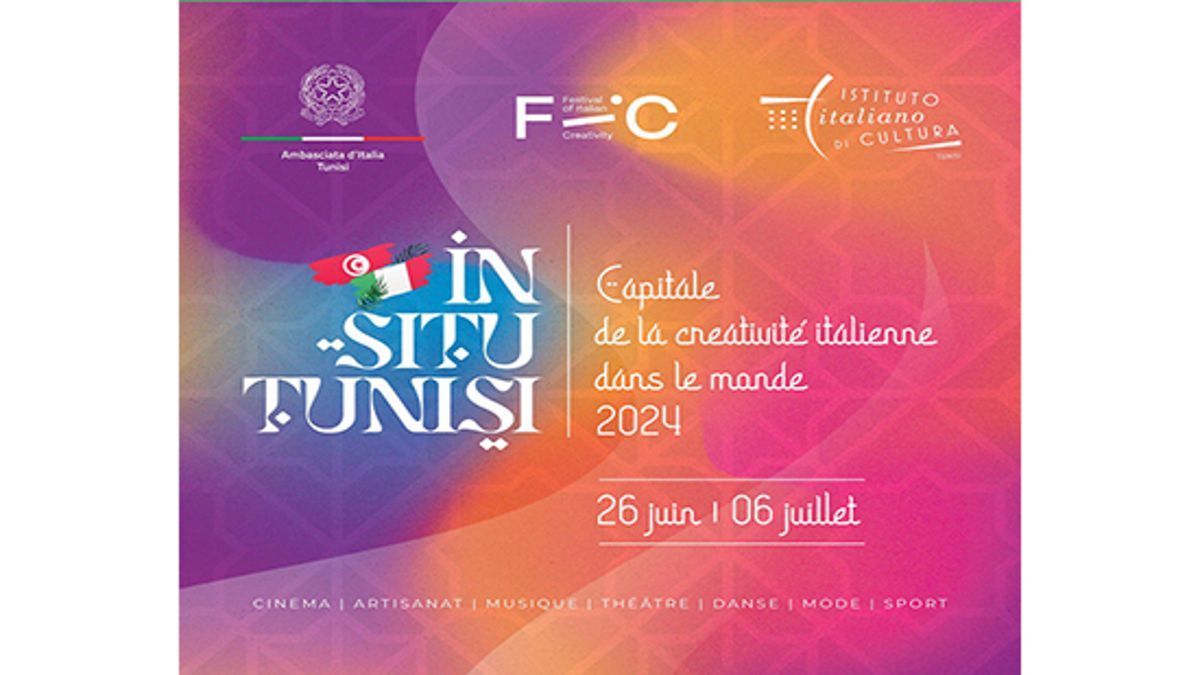 إنطلق مهرجان الإبداع الإيطالي في تونس IN SITU-TUNISI أين مجموعة من المبادرات التنشيطية تنظمها السفارة الإيطالية بالتعاون مع المعهد الإيطالي للثقافة والفنون، بالتعاون مع مجموعة من المؤسسات والفنانين والشركات الإيطالية والتونسية وستبقى فعالياته تحيي الشوارع والحياة الثقافية في تونس إلى يوم 6 جويلية 2024.